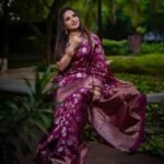 Attractive Wine Color Floral Printed Banarasi Soft Silk Saree – Anantrafashion