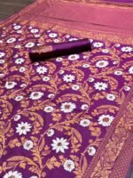Be the first to review “Attractive Wine Color Floral Printed Banarasi Soft Silk Saree” Cancel reply